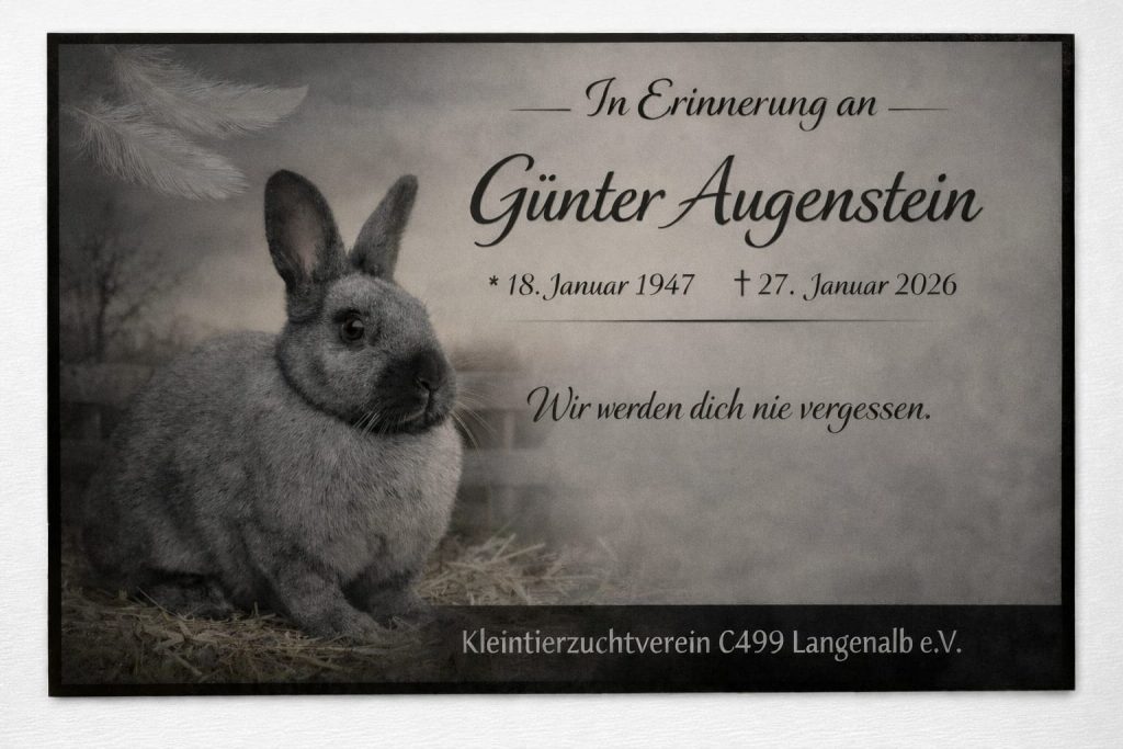 Verein Herzlich Willkommen beim Kleintierzuchtverein C 499 Langenalb e.V. Nachruf Günter Augenstein unter Rubrik „Neuigkeiten“